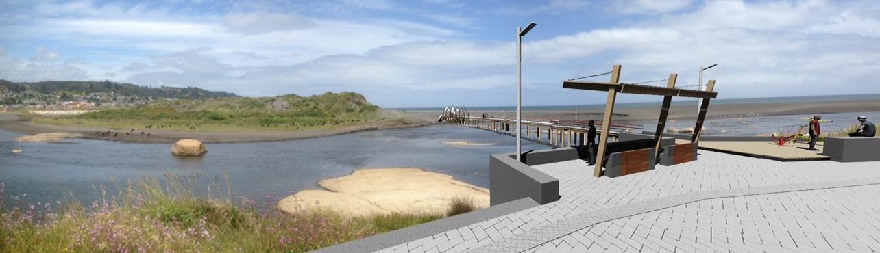 Mejoramiento borde costero Curanipe y Pelluhue: El objetivo del estudio fue el desarrollo de la ingeniería y arquitectura de detalles para los bordes costeros de Curanipe y Pelluhue. Se realizó además topografía, batimetría, calicatas, estudio de situación legal de terrenos.