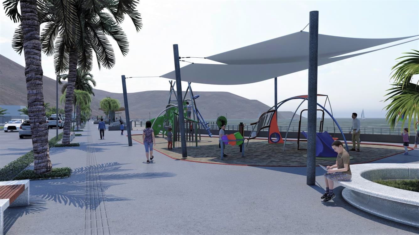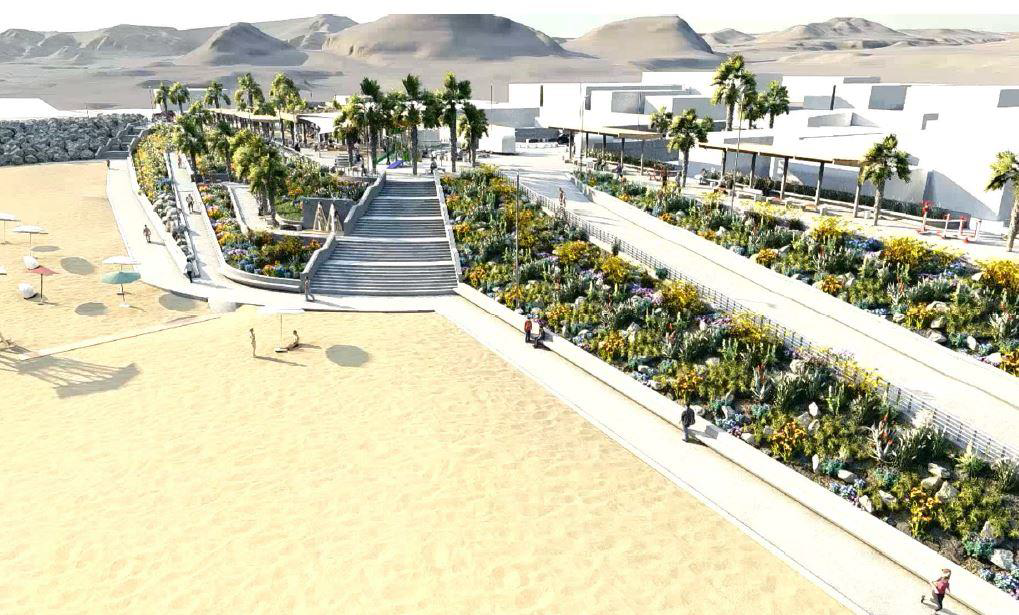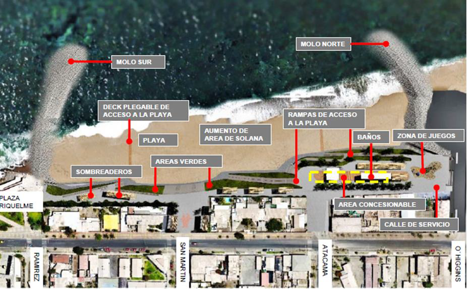 Desarrollo de ingeniería de obras marítimas Playa El Cuadro, Antofagasta: Diseño de ingeniería de detalles del proyecto de obras marítimas y proyectos de especialidades de agua potable, alcantarillado, riego, eléctrico y vial.